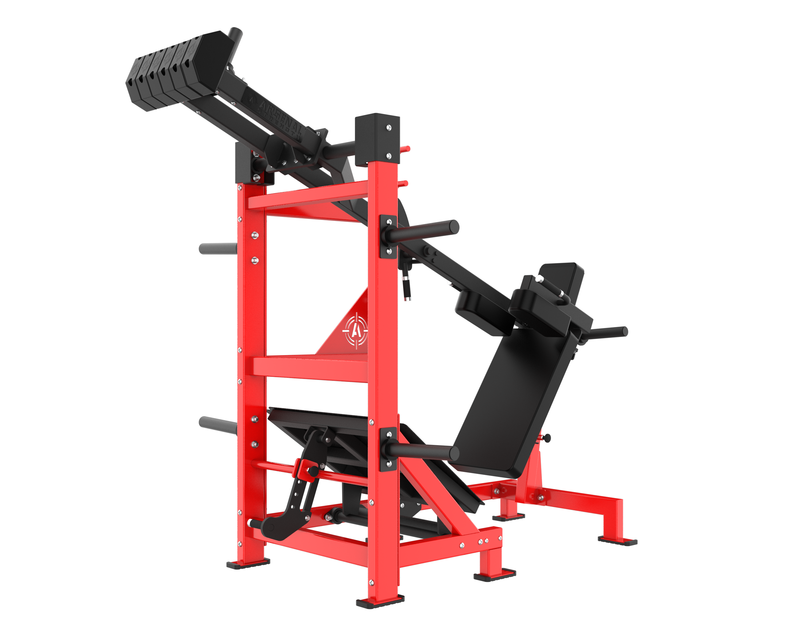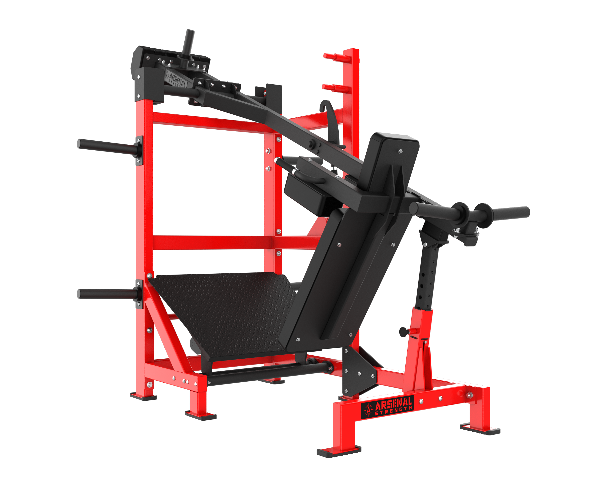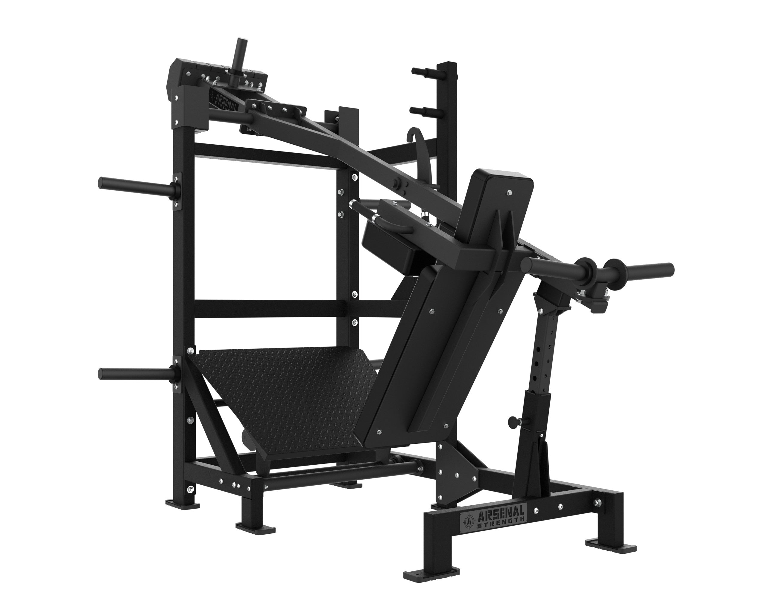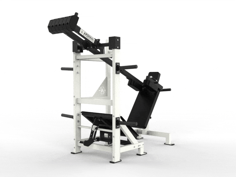 The Arsenal Strength Reloaded Pendulum Squat is one of the most popular Arsenal Strength pieces of equipment. This Pendulum Squat has a large range of motion, a large back pad to secure body placement and includes 7 gauge uprights for unit stability.