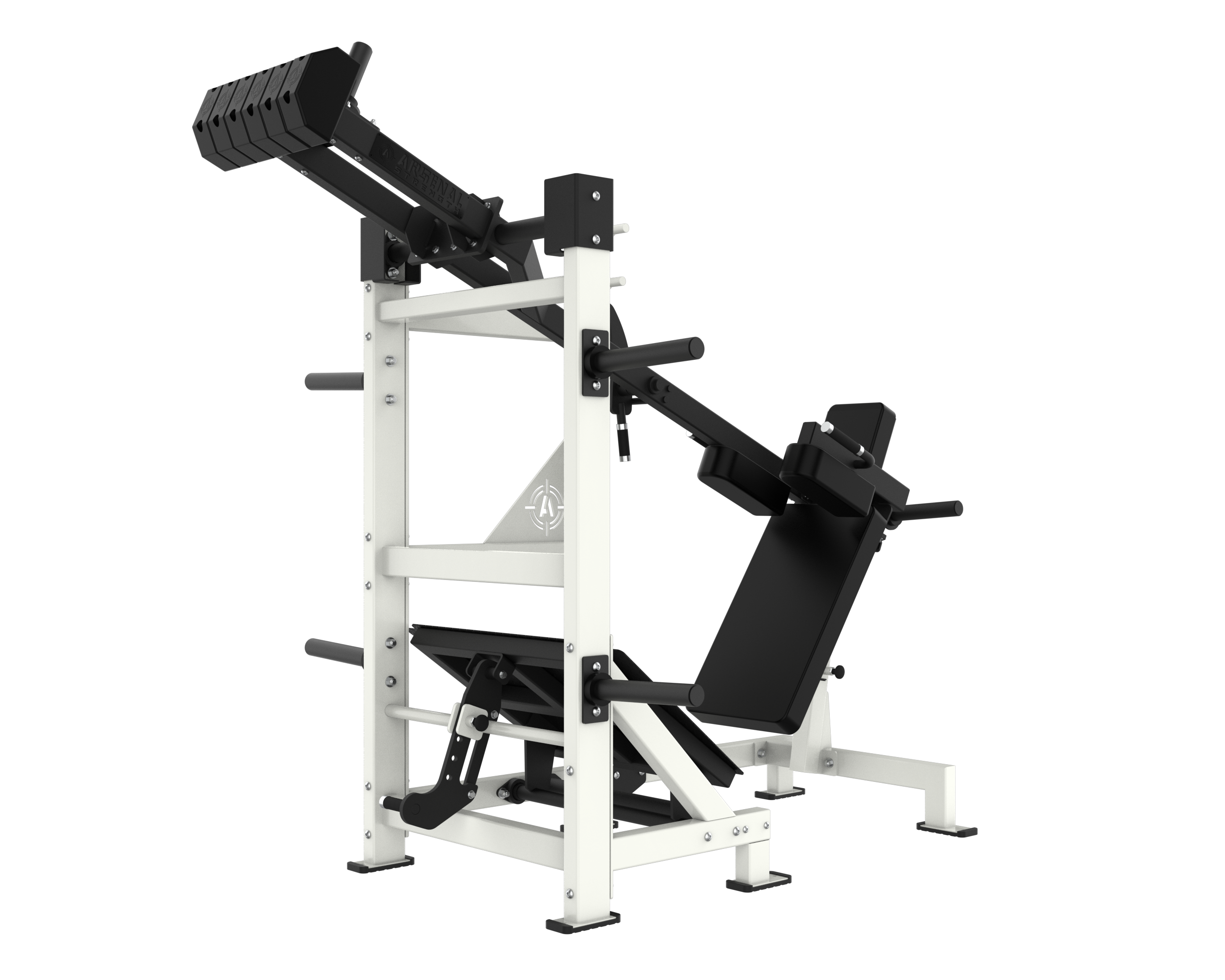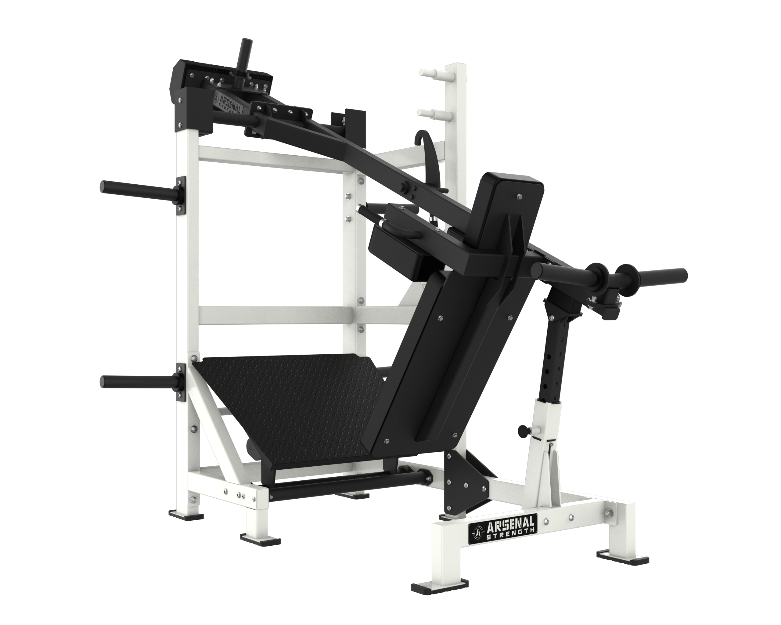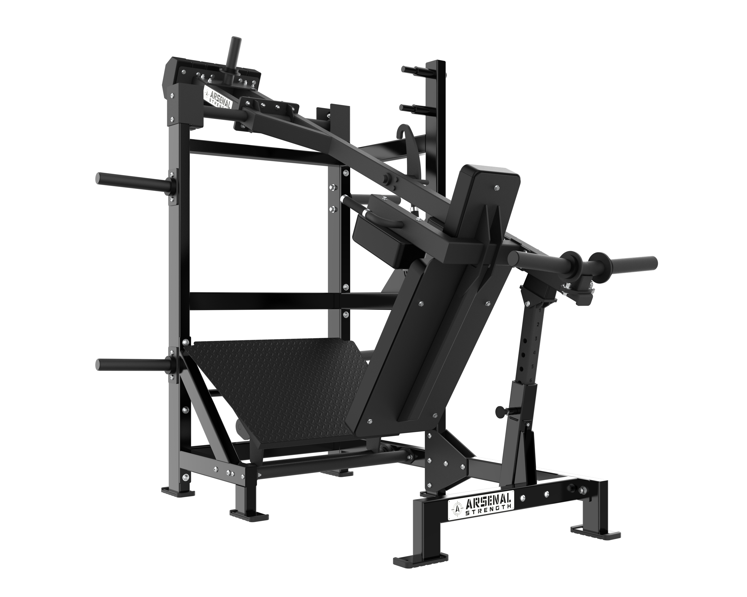 The Arsenal Strength Reloaded Pendulum Squat is one of the most popular Arsenal Strength pieces of equipment. This Pendulum Squat has a large range of motion, a large back pad to secure body placement and includes 7 gauge uprights for unit stability.
