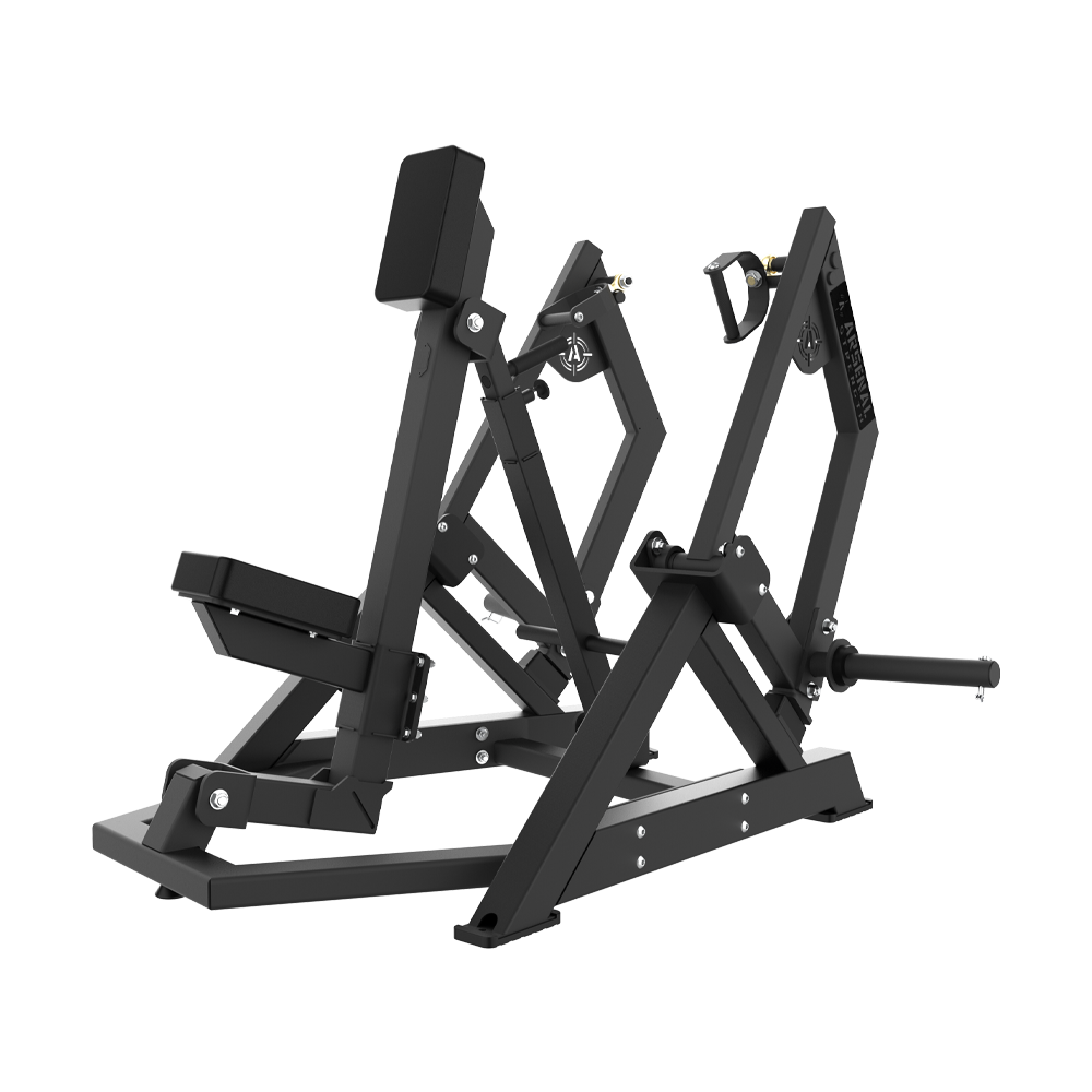 The Arsenal Strength Reloaded Standing Chest Press offers a one-of-a-kind chest training experience from a standing position with iso lateral workarms that move in a converging motion. Featuring 5 horizontal grip positions and 2 neutral grip positions, this machine provides the user with 4 range-limiting positions and a prestretch lever for an easier starting position. Starting movement weight: 20lbs